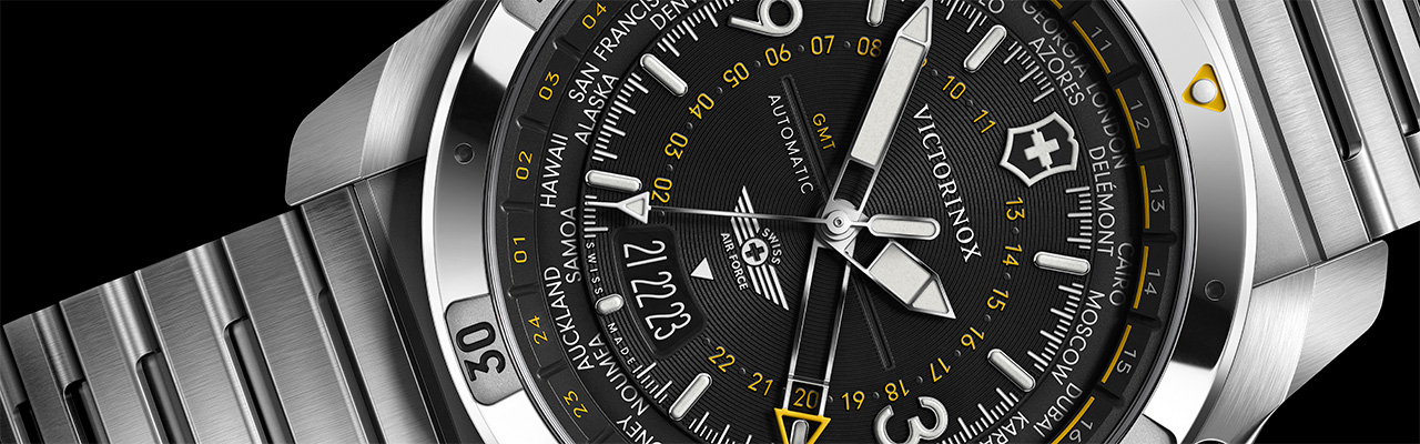 2025年瑞士維氏VICTORINOX推出飛行錶Air Pro系列,錶款具備GMT複雜功能可以追蹤多個時區時間。帶有品牌風格銳利切面的不鏽鋼錶殼、採用立體深度的面盤與緊密排列數字資訊、放大時標和醒目指針造型等,兼具飛行錶面貌與品牌個性風格。