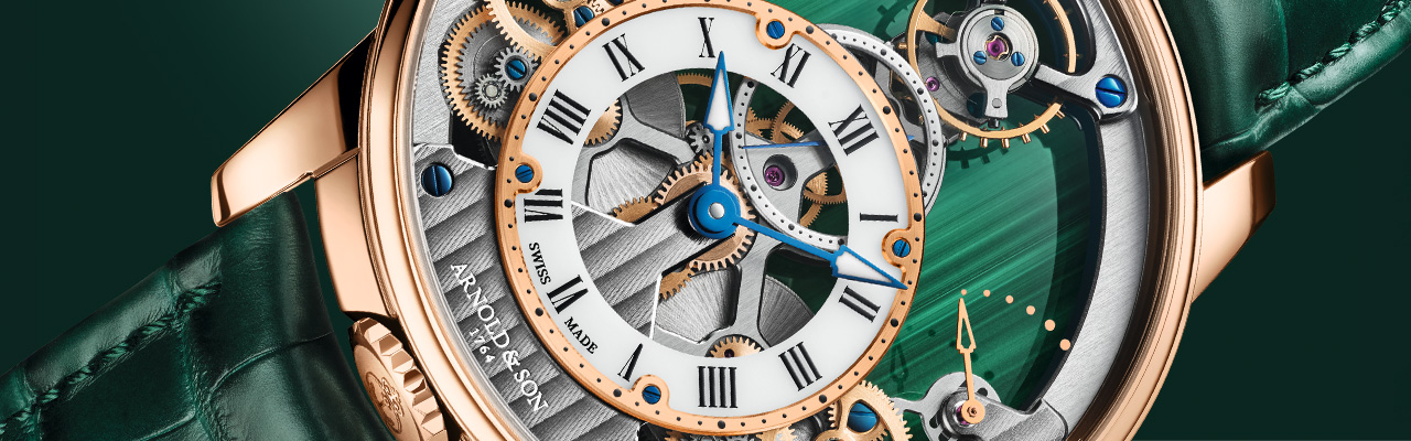 以孔雀石映襯時間結構/ARNOLD & SON Time Pyramid 42.5 Malachite