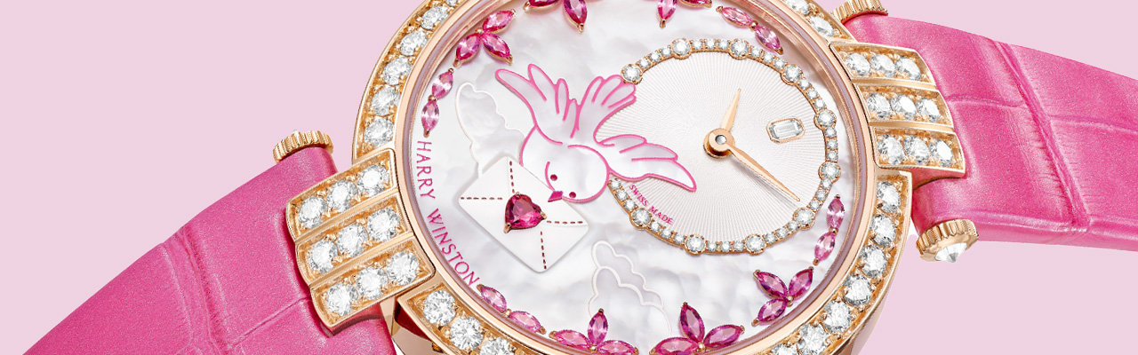 以海瑞溫斯頓(Harry Winston)Premier卓時系列情人節特別款腕錶為核心,品牌再次以高級珠寶製錶語言詮釋愛的象徵——從銜著情書的信鴿意象、珍珠母貝錶盤的虹彩光澤,到紅寶石、粉色藍寶石與經典 Winston Cluster 鑲嵌工藝的細膩鋪陳,將浪漫敘事、珠寶工藝與瑞士機械製錶完美交織。