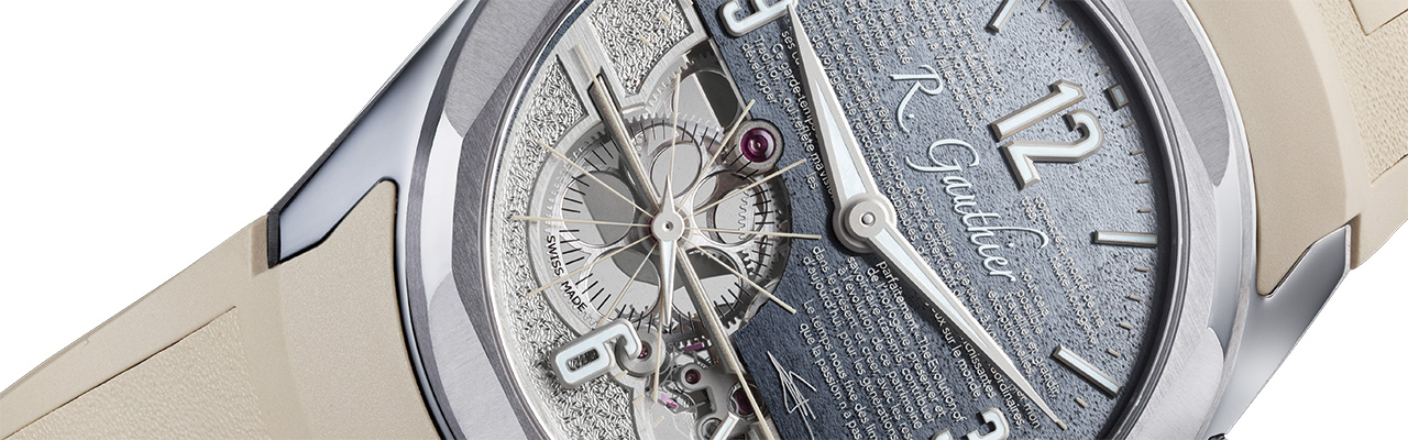 這款腕錶僅限在2025年6月1日前已經擁有(或訂購)ROMAIN GAUTHIER的錶主訂購,且能在機芯上鐫刻錶主姓名,搭配面盤文字,意念上更像是一封寫給藏家的書信。