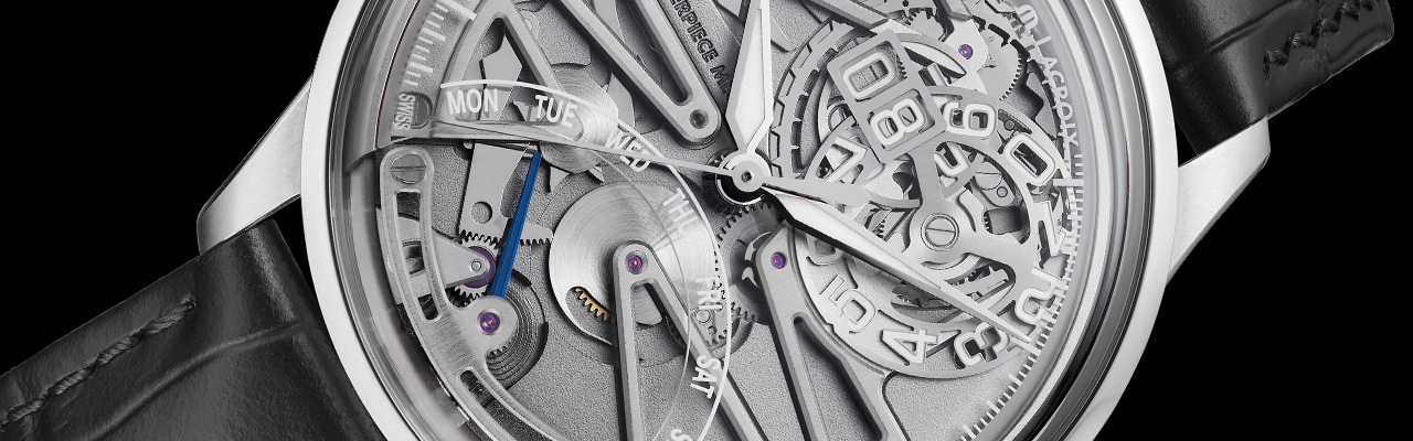 短短50年間,艾美錶已創作出26枚匠心系列機芯,令人驚嘆。此外,品牌亦研製多種自製裝置,兼具實用功能與觀賞性。這一次,來自瑞士汝拉地區的艾美錶推出全新自製模組,將「大日期」與「逆跳星期」兩項複雜功能融為一體。42毫米精鋼錶殼以磨砂與拋光表面交錯修飾,並配備透明錶背。透過錶背可欣賞匠心系列ML302機芯,其上飾以多種精緻修飾,包括日內瓦波紋、圓形粒紋與蝸形飾紋。