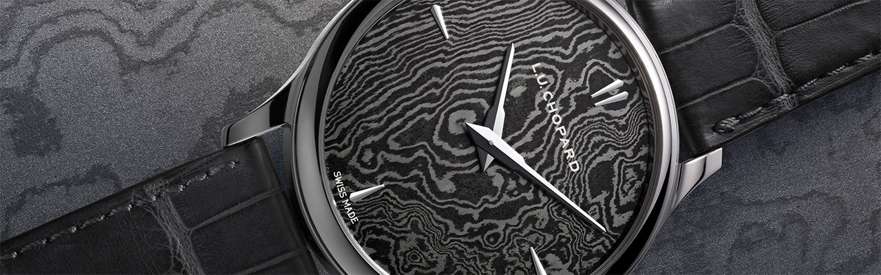 CHOPARD請了一位沉浸日本鍛造技術數十載的工匠大師,於納沙泰爾的Corcelles鍛造廠親手製作這塊面盤。透過大馬士革鋼來呈現其設計,這種珍稀材質經過加熱至超過攝氏1,000度的海綿鐵製成,經過精心挑選、層層疊加,再透過極其繁複的鍛打焊接工序,千錘百鍊而成。其材料的珍罕度和製作上的複雜性定調了其中的珍藏價值。而面盤上呈現出120層至160層鋼材的細膩結構,不僅如雲紋般美麗,每一只都呈現不同的面貌,也讓每一只錶款都成為獨一無二的珍品。