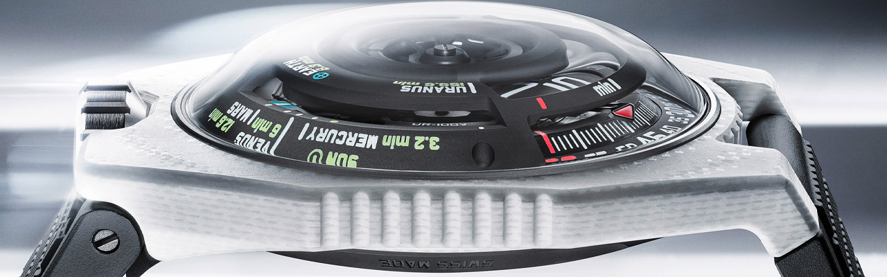 URWERK創辦人兼藝術總監Martin Frei表示:「佩戴UR-100V LightSpeed 有如將宇宙一隅置於腕上,以人的感知角度體驗一個迷你宇宙概念,在腕錶方寸之間顯示天文距離,將光速化作視覺動態,基於參數及比例的變化,光速以相對緩慢的分秒概念表達。太陽光線到達水星需要3.2分鐘、金星6分鐘、地球8.3分鐘、火星12.6分鐘、木星43.2分鐘、土星79.3分鐘、天王星159.6分鐘,海王星4.1小時。這複雜設計不僅顯示數據,更形象化顯示宇宙的距離,優雅地展現宇宙之浩瀚。」
