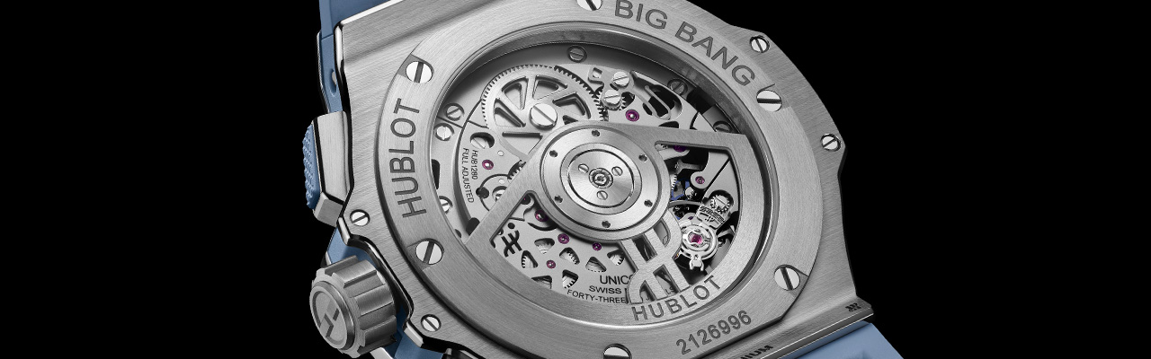 Big Bang Original Unico系列與腕錶搭載品牌自製UNICO飛返計時機芯,可提供三日動力儲存。Spirit of Big Bang腕錶則搭載 HUB4700 高振頻機芯,振頻達 5 赫茲(每小時 36,000 次)。兩款時計均搭載”One Click”單鍵快拆錶帶裝置、鈦金屬折疊錶扣,以及錶圈上飾有六顆因功能性需求而方向各異的獨特 H 形螺絲。