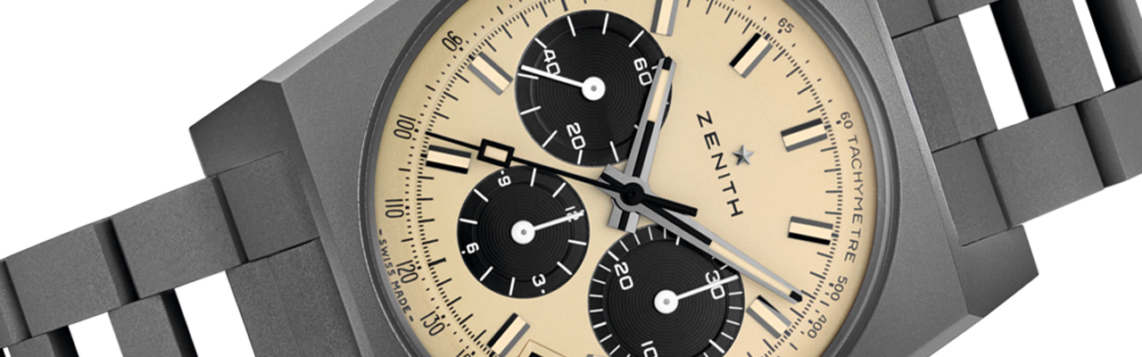2019年起真力時將這款虛構的腕錶付諸實現,打造黑色面盤款式,之後又分別推出白底黑圈的熊貓面款和黑白相間不對稱面盤款。如今品牌以米色面盤搭配黑色小錶圈設計打造第四只限量版,錶殼使用霧面黑色微噴砂鈦金屬,整體外觀更加貼近漫畫中描繪的面貌,頗有復古感覺。此錶搭載El Primero 400機芯,可精準計時至1/10秒。
