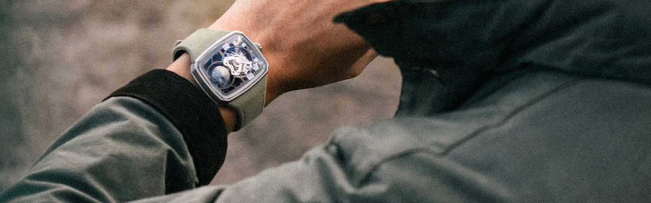 這款腕錶採用橄欖綠及沙色配色,靈感來自大自然與礦物的色彩。時間宛如一種地質現象,由物質塑造,並在光影中沉澱出歲月痕跡。長方形鈦金屬錶殼延續豪朗時獨樹一幟的設計語言,線條緊湊又充滿建築風格。俐落的輪廓就像直接自原料雕琢而成,重新調整的比例則為腕錶帶來完美的平衡感。配備10 ATM(100米)的防水性能, 這枚腕錶既展現當代風格,亦彰顯腕錶的耐用可靠。