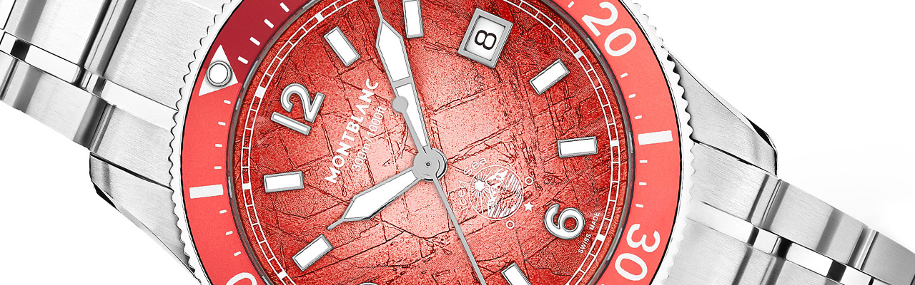MONTBLANC Iced Sea系列腕錶的靈感源自於白朗峰山脈最大的冰川—「冰海冰川」(Mer de Glace)。由於積雪覆蓋,冰川通常以白色和灰色為主色調,但在一年中的溫暖季節,則會呈現出溫暖的色彩;黎明與黃昏時分,尤其是在夏季,冰川會在錯綜複雜的晶體結構中倒映出天空絢麗的色彩。