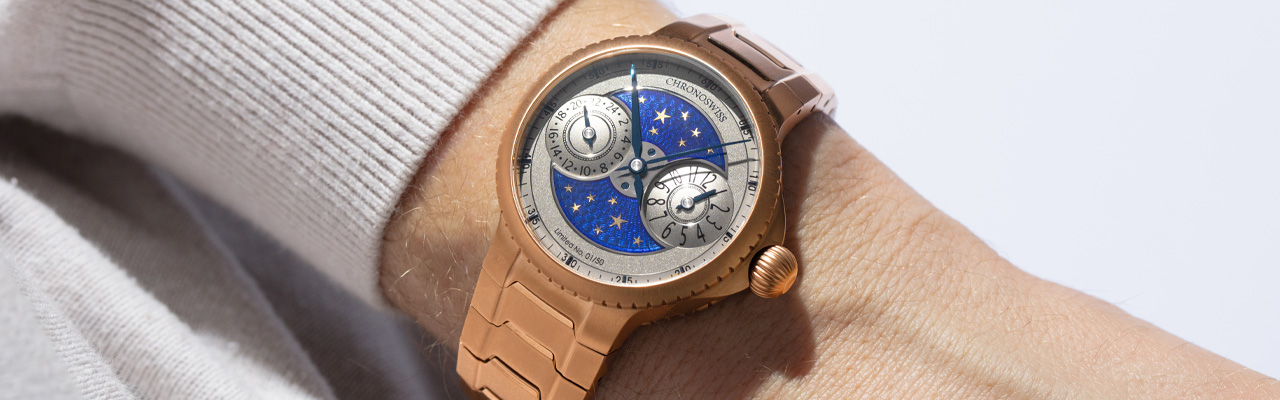 琺瑯星空×雙時區/CHRONOSWISS Pulse Gmt Enamel Sky Gold兩地時間腕錶