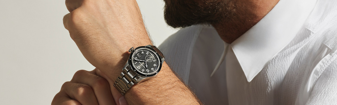 此外,塗覆Super-LumiNova®的教堂式指針讓人聯想到1920年代與1930年代的探險腕錶。為了搭配復古風格,錶圈為固定式設計,並鑲嵌黑色陶瓷,錶圈上飾有夜光基本羅盤方位點,方位點之間還點綴小三角形方向指示。