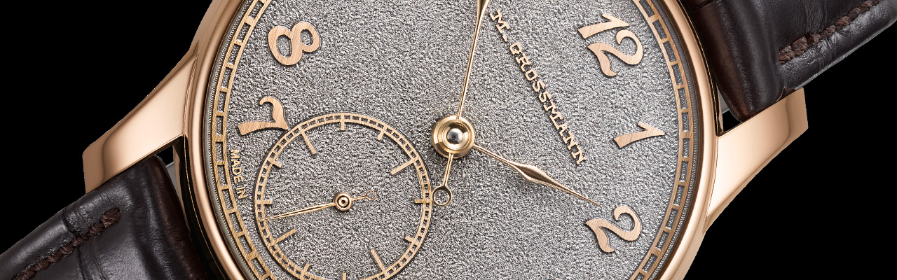 作為週年紀念的致意,復古字樣「M. GROSSMANN」亦以相同工藝製作,重現品牌於1875 年所使用的經典標誌。為營造雕塑般的立體效果,錶盤背景以世代傳承的雕刻技法進行純手工處理。機芯亦蘊含另一項紀念細節:擺輪夾板上鐫刻「1826」字樣,象徵 Moritz Grossmann 的誕生年份。