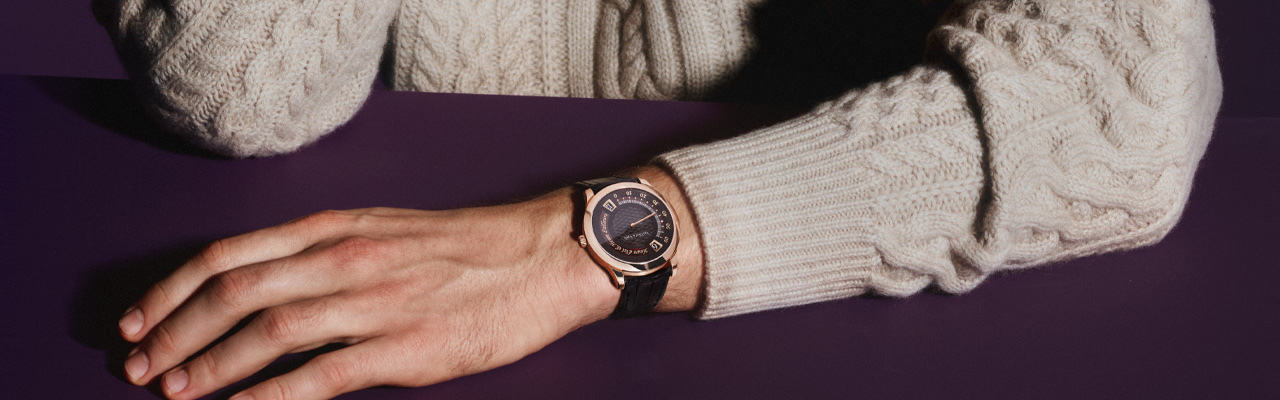 當分針走完60分鐘的軌跡後,即返回起點,而小時顯示亦同步跳動,標誌一組時間旅程圓滿結束,另一組旅程隨即開始。腕錶利用單一錶冠同時為機芯上鏈和調校兩地時區及分針,操作簡單方便,更顯匠心獨運。
