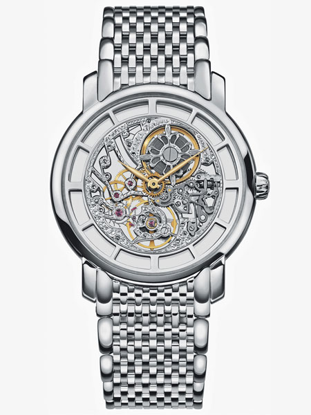 這枚錶的尺寸僅有31.4mm,錶殼的厚度只有5.96mm,甚至比絕大多數的石英錶都薄,但它採用的177型機芯卻是完全機械式的設計,由110枚零件共同構成,每一枚零件都要經過製錶師經心雕琢打磨,所有金屬板更必須雕除非必要的部份,所剩下的骨架僅是維持一枚腕錶運作所必須存在的,也就是說,在這枚錶上沒有任何一絲累贅的部份,骨肉勻稱就像麗質天生的絕世美女一樣。