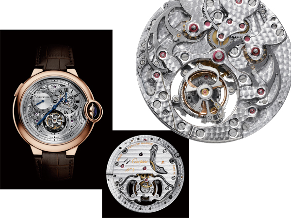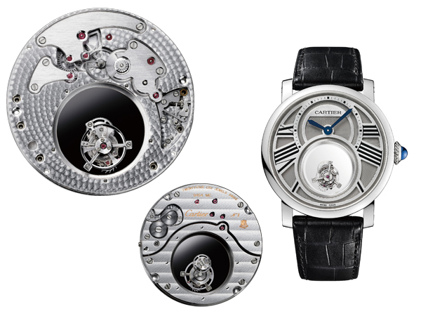 神祕錶不採限量方式推出,這對卡地亞的生產是一大挑戰,也表示卡地亞的技術已臻成熟。不過更厲害的是神祕雙陀飛輪,因為過去雖然有品牌製造過神祕陀飛輪,但卻從未出現過可公轉、自轉的神祕雙陀飛輪。卡地亞利用了兩個藍寶石水晶透明圓盤:一個用來乘載陀飛輪裝置,並以五分鐘為週期轉動一週;另一個圓盤則與陀飛輪底部軸乘連接,將機芯的動力傳輸到一分鐘陀飛輪裝置上。