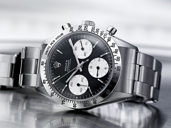 1963年,勞力士推出專為賽車手所設計的Cosmograph腕錶,這款型號為Ref.6239的計時腕錶,首次將面盤上的測速計移至外側錶圈,提升了閱讀的辨識度。其面盤與計時盤採用對比色彩的設計,透過淺色搭配黑色的組合,不僅增加辨識度,整體的視覺美感更是格外突出。