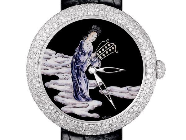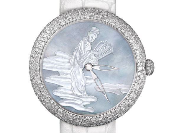 另外香奈兒還推出兩只為一套的套錶組,其中包含珍珠母貝雕刻及琺瑯彩繪各一的面盤,面盤圖案分別為中國仕女音樂家不同的神情、姿態,而以珍珠母貝手工雕刻而成的圖樣,細節生動、層次分明,也是首次出現於系列中的技法。