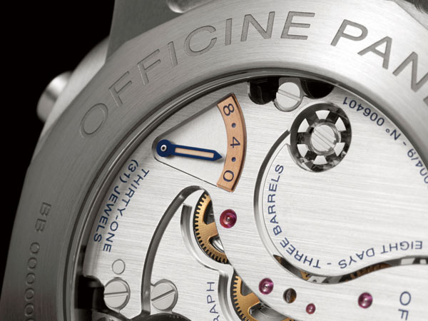 除了上述的改變,P.2004/9機芯與原本的P.2004系列機芯結構相同,具備三發條盒設計,擁有長達八天的動力儲存,並使用自由收游絲與螺絲微調擺輪。透過導柱輪裝置與垂直離合結構,可確保精密的計算過程,中央計時秒針不易抖動與延遲。另外最值得一提的是,位於機芯夾板上方的八天動力儲存顯示,是同系列錶款中所僅見的,過去只有運用在P.2005陀飛輪機芯之上。