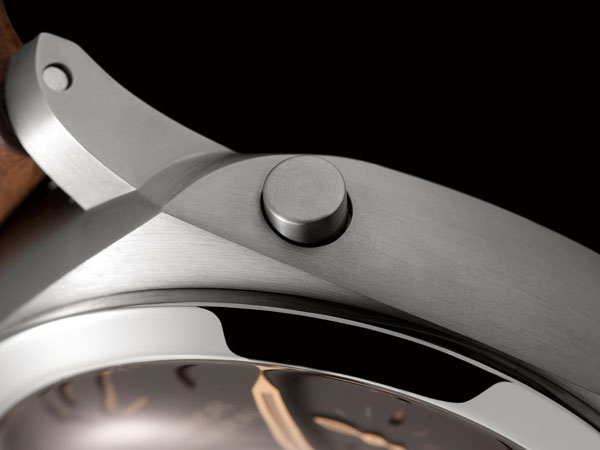 本款腕錶選用鈦金屬材質,不僅可減低的重量,鈦金屬所具備的優異抗腐蝕性和低致敏性,同樣適合運用於錶款的製作。而錶款的面盤,除了經典的三明治面盤設計之外,也採用復古的元素,以棕色的面盤與黃褐色的夜光塗料,呈現錶款在多年後的自然氧化色澤。
