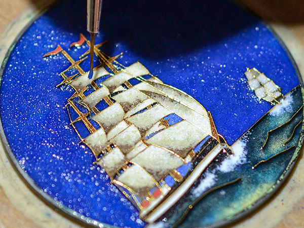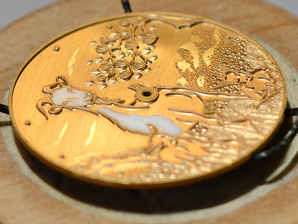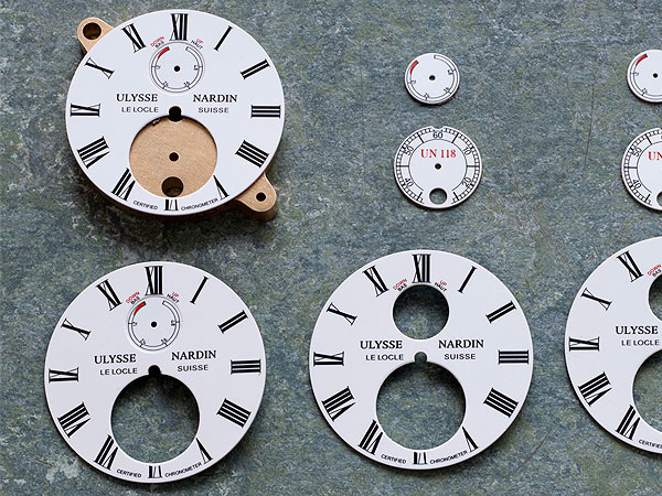 目前廠內的琺瑯面盤的製作都保留了手工生產的傳統,所生產的主要類型有大明火琺瑯、掐絲琺瑯、內填琺瑯與半透明琺瑯。筆者參訪當天,有三位師傅正在製做航海天文台腕錶的大明火琺瑯面盤,一位將琺瑯粉末均勻的灑在面盤銅胎上,一位將灑好釉料粉末的面盤移入電爐燒製,另一位則是將燒好的面盤烤軟後,將之壓成符合標準的微弧面盤。一個面盤約要經過四次灑粉與燒製的過程,才能達到足夠的面盤厚度。在燒製前先塗上易燃物質,再上琺瑯粉末,如此進電爐後不久即會燃起明火,將溫度拉到820度以上,藉著高溫可以燒出更渾厚飽滿的色澤,此即大明火之名的由來。特別的是面盤上的刻度也都是琺瑯材質,沒有掉色或脫漆的顧慮。大明火面盤得之不易,約有百分之七十的成品是不合格而被淘汰的。