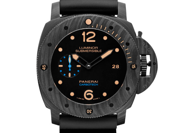 2015年沛納海推出的Luminor Submersible 1950 Carbotech™腕錶 (型號PAM00616),同樣是遵循相同的創新模式,在此之前,尚未有品牌推出相同的材質。此次所使用的Carbotech™碳纖維複合物料,是由碳纖維薄片與高科技聚合物PEEK(Polyether Ether Ketone -聚醚醚酮)以特定溫度經高壓壓縮而成,使物料更為堅固耐用。