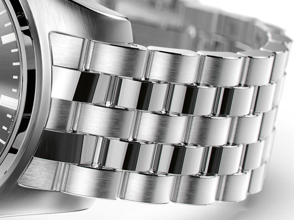 3. 在噴火戰機飛行員計時腕錶以及飛行員自動腕錶36錶款中,使用霧面拉絲與亮面拋光的不鏽鋼鍊帶。