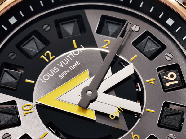 2015年9月推出的Tambour VVV GMT錶款,其實是延續之前Spin Time GMT的特殊顯時功能,特別的是,在細節上加入和品牌服裝相關的元素,在設計中更顯貼切。