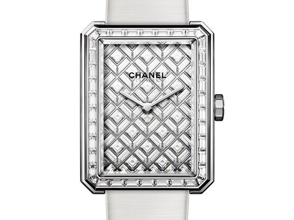 更特別的是,CHANEL在錶帶上還利用壓模設備加以壓製,將錶帶正面壓印出品牌在服裝上最知名的布料紋理,也就是經典斜紋軟呢圖騰,同時錶帶兩旁,也以宛如斜紋軟呢外套滾邊般精緻細膩的收邊處理,可說正統延續了CHANEL在腕錶與服裝設計上的連結。