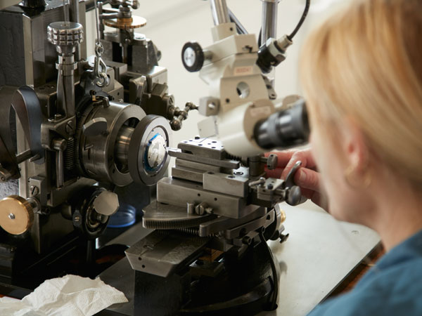 這次在這現代化的錶廠中,意外的看到四架古意盎然的工作機台,這是積家近年四處蒐羅來的古董機台,經過修復改造後再次服役,主要用於機刻雕花之用。瑞士製錶有一段空窗期,許多傳統機具如今已經失傳或是無人懂得操作,除了因為石英風暴帶來的空白期,大量現代工具的輔助改變工作習慣也是原因之一。
