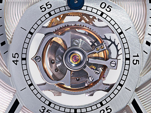 然而,賞玩價值更高的浮動式陀飛輪是要考驗技術的。傳統陀飛輪是在上、下兩端都有橋板固定,製作上相對容易。而取消了上方橋板的浮動式陀飛輪只從單邊支撐固定,若要維持可靠的穩定性,其難度可想而知。