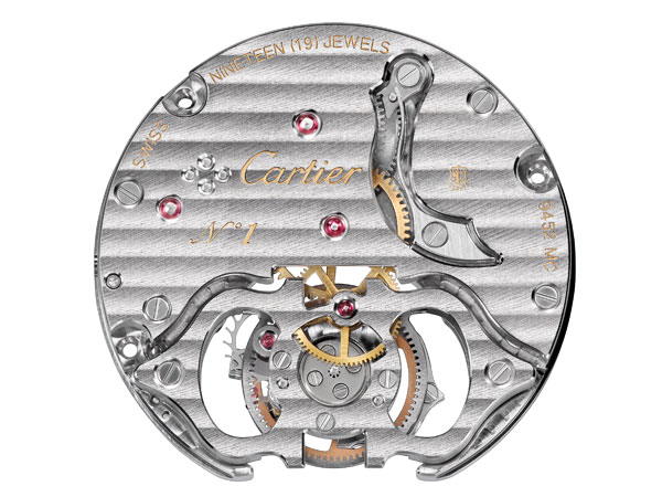 Drive de Cartier浮動式陀飛輪腕錶所使用的卡地亞9452MC手動上鍊機芯與卡地亞Ballon Bleu de Cartier浮動式陀飛輪腕錶相同,但錶殼、面盤設計的差別就讓整只腕錶呈現出獨自的個性,耳目一新。