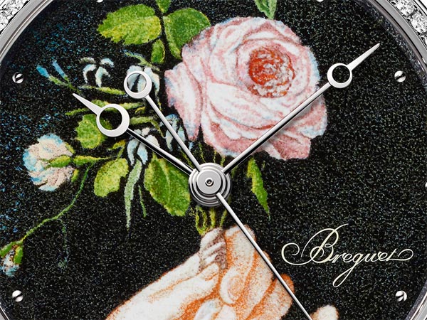 法王路易十六之妻瑪麗•安托瓦內特是寶璣最有名的客戶之一。這款腕錶不僅表現了美麗的彩繪琺瑯工藝,同時也訴說著皇后與寶璣的故事,並透露出法國皇室的生活細節;皇后手持的玫瑰莖幹上特別以白色絲帶包覆,以避免被玫瑰刺傷。可見對皇后的保護可以說是無微不至!