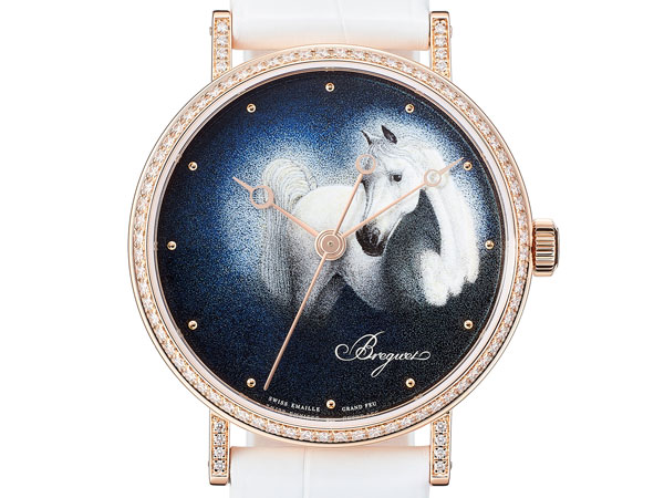 寶璣BREGUET的琺瑯面盤腕錶非常稀少,過去寶璣用的都是白色大明火琺瑯面盤,近年才出現了寶璣的彩繪琺瑯面盤腕錶。2016年發表了「凡爾賽玫瑰面盤」和「星夜駿駒面盤」兩款寶璣Classique 9078彩繪琺瑯腕錶,前者取材自法國皇后瑪麗•安托瓦內特(Marie Antoinette)的肖像畫;後者則是以星夜中的白色駿馬為靈感。結合繪畫、琺瑯與製錶工藝的珍品,令人過目難忘。