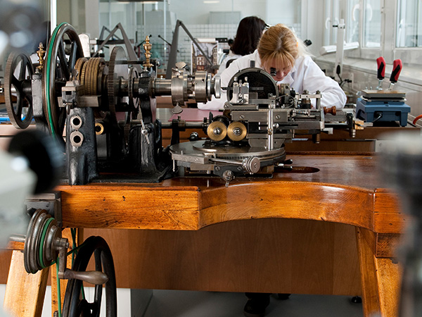 錶盤和機芯在檢查桌上接受多重一絲不苟的檢測,而在檢查桌旁,則是存放製錶工具的空間。多個世紀以來,製錶工具沒有太大的改變。寬闊的抽屜裝滿各種長度和形狀的木製手柄和雕刻刀。