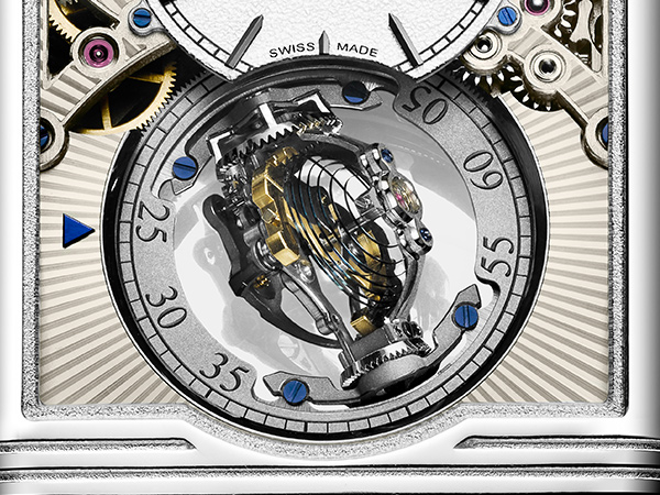 鏤空工序講求細膩的工藝,而如此纖巧的機械機芯更增加了製作過程的難度。第二時區時間顯示及Gyrotourbillon球型陀飛輪呈現在於佈局有致的鏤空機芯之上。
