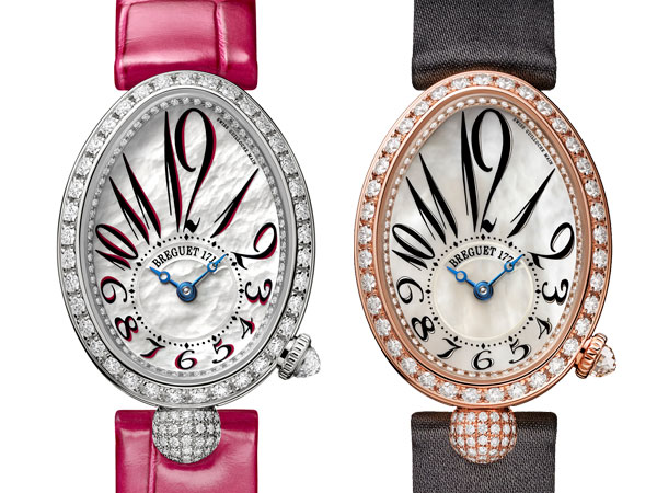 鵝蛋形的錶殼、錢幣紋的錶殼側面、6時位置的球形錶耳、4時位置的錶冠、偏心式針盤、寶璣式指針等等都是那不勒斯王后系列錶款的共同特徵。漂亮的外型有很高的辨識性,自推出以來,一直受到好評。
