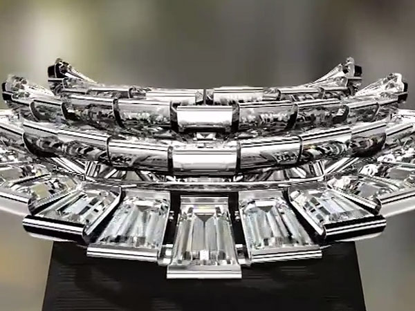 畫龍點睛的設計在於每個長形鑽石花瓣都是可以活動的!每一個長形鑽石花瓣都切割成梯形,鑲嵌在白金基座上,而基座再以精細的絞鍊裝置,將梯形的短邊固定在錶殼上,單邊以絞鍊固定的鑽石因此可以有限度的活動,當腕錶隨著手腕活動而變換位置時,每個獨立的鑽石花瓣也會跟著變化姿態,而所有的鑽石花瓣因勢動作時,整朵鑽石花就會像隨風搖曳的花朵一樣活動起來。