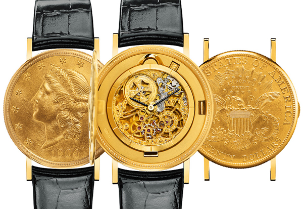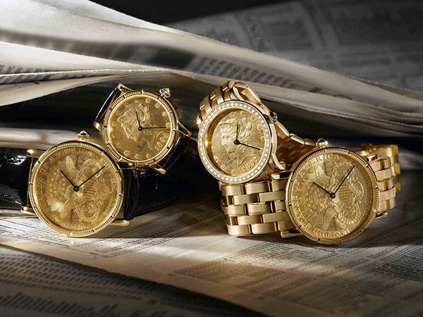 一直以來,古董金幣的存量並不多,錶廠要製造出金幣錶,絕大部份古董金幣還是得仰賴收藏家的供應,方才能得以製作;然而,一枚古董金幣得經由專家的細心挑選,從外觀上找出沒有損傷及幣面圖騰上完整的金幣作為錶殼主體,才能成為上上之選的錶殼主體,只是很多人不知道做一只金幣錶的過程是需要多少的時間及精神。許多的大品牌如PP、AP、VC、PIAGET、JUVENIA、ROLEX…都曾經推出過古董金幣錶,而這些品牌所推出的此類產品,大都是將整枚金幣切割成為二片挖空後,保留外部兩幣面的原始面貌後,再經由專家所設計的收納結構將一只機芯藏在活動的夾層中間。
