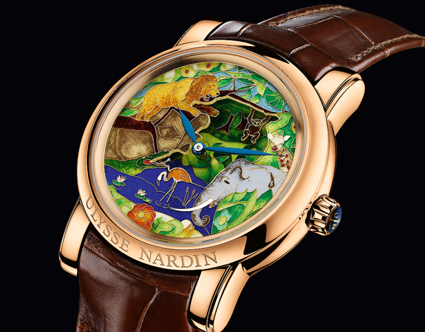 又被稱為景泰藍,以金屬絲線盤出花紋,接著才把各色琺瑯置入框架內外,重複燒製。掐絲琺瑯起於元朝(1206~1370),這是傳教士由中亞傳入中國,結合了鑄銅、玻璃等技術,因此可以創造出千變萬化的圖紋;過去雅典錶曾以一款叢林三問報時錶令錶壇驚豔,這款錶結合活動人偶及掐絲琺瑯技術,勾勒出熱鬧且生命力旺盛的熱帶雨林情境,面盤上老虎、犀牛、大嘴鳥都會隨著三問功能啟動而擺動,小魚也會從瀑布上方躍入水中,此錶生產18只,價格超過8百萬元,目前已全數售出。雅典錶乘勝追擊,首席琺瑯工藝師Michel Vermot親自操刀,製作出白鷺鷥琺瑯彩繪錶,未搭載其他功能,強調白鷺鷥羽翼已豐,展現凝聚人文精神與鐘錶工藝的頂級收藏品特色。