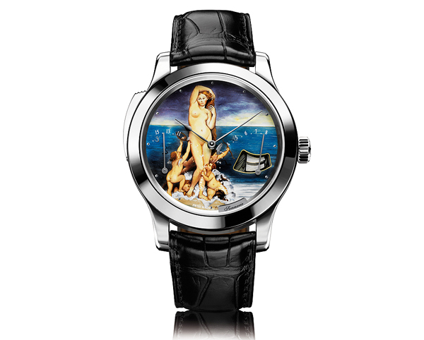 相信許多的錶迷跟我一樣都喜愛這樣的藝術表達模式,特別是當它們燒製完成時那種如青瓷翠玉般,帶有那種獨特的光澤,但質感又相當的透明表現;我知道琺瑯的質地是像輕薄玻璃般的,所以它經不起我們一不注意時得碰撞或摔傷,但它又是不怕水氣的特性,之所以許多的經典錶款會將名畫放置於錶盤上,就是希望該作品歷久彌新般的亮麗,不像一般我們現今所見的「印刷塗料」錶盤處理方式,會因氣候濕氣而產生變化。不過話說回來,並不是所有鐘錶品牌都具有製作琺瑯彩繪的能力,尤其是「微縮琺瑯彩繪藝術」,現在更列為日內瓦製錶七大工藝之一,目前全球具有這種技術的師傅大約僅剩10人,瑞士當地剩下不到四家工作室。百達翡麗已封筆的微繪琺瑯大師Suzanne Rohr曾表示她一年僅能生產2~3個作品,其困難度之高可見一斑。
