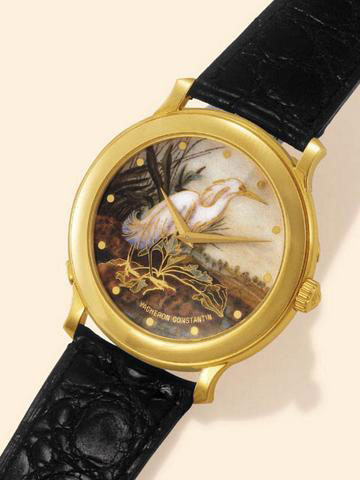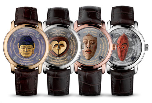 江詩丹頓(Vacheron Constantin)在精雕工藝及琺瑯彩繪上的區塊,也是非常的精彩。早期限量生產的麥卡托(Mercator)紀念錶,面盤圖案選自文藝復興時期的古世界地圖,以景泰藍琺瑯為材質,運用跨世紀傳承的精細手工雕琢而成,其中一只面盤顯示歐、亞大陸地圖的麥卡托琺瑯面紀念錶,曾於安帝古倫(Antiquorum)公司於1994年所舉辦的拍賣會中,以高達瑞士法郎八萬兩千五百元成交,是當時炙手可熱的拍賣會寵兒。食髓知味,接著推出了以美國的鳥類為主題的彩繪錶,名為Les Historiques系列,屬於掐絲琺瑯彩繪,每一隻鳥兒的線條皆以金絲框成,再加上人手慢慢掐出的身型,簡直可用栩栩如生來形容,做工之細膩,不同的鳥兒搭配不同的地理背景,堪稱錶壇藝術之傑作,也掀起了鐘錶業的彩繪工藝風潮。近年來,承續麥卡托的設計而推出的還有美洲大陸發現者-裏斯托夫.哥倫布(Christopher Columbus)琺瑯彩繪紀念錶與花了24年的歲月探索絲綢之路前往中國者-馬可.孛羅(Marco Polo)琺瑯彩繪紀念錶,相信日後也同樣的價值不斐。還有頗具文化價值的面具套錶(Metiers D’Art Les Masques Collection)系列,以古法重現文明記憶,高超的金雕技法不是最困難的,而是如何反映出面具所傳達的精神,才是真正的困難之處,講究一刀入魂,以中國遼代面具為例:由內蒙古來的契丹人所製作,代表了祂們文化中的死亡面具,只要戴上了面具就像換了不同的角色、不同的性格,非常的令人敬畏。第二套的面具套錶也同樣的反映出不同的文化精神,2009年發行的第三套甚至呈現了中國西藏地區的文化,讓人了解到更多遠古種族藝術的遺跡,這種藝術文化的傳承,以現代鐘錶品牌來說,只有江詩丹頓(Vacheron Constantin)做得到!