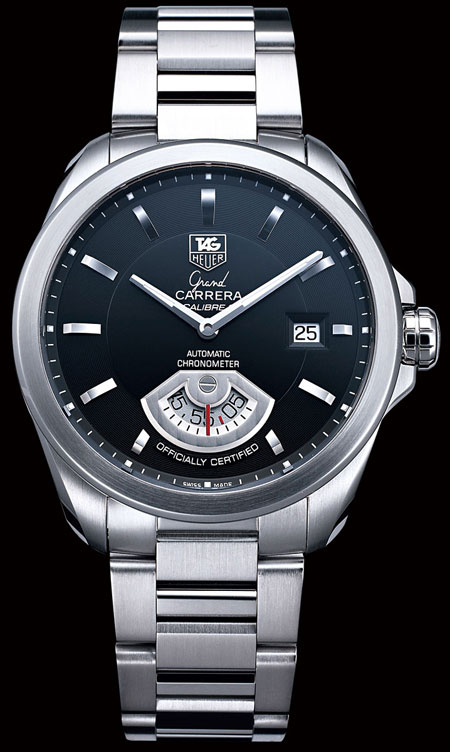 2007年推出的Grand Carrera,繼承了Carrera系列的賽車意念。為了賦予錶款跑車特色,豪雅發展一組獨特的轉盤秒針機制(Rotating System),以一個轉動的秒針盤來取代秒針,以此模擬跑車的儀表板,表現上有點像體重計的指示盤。不管如何,說來簡單,實際製作上是要花費一番功夫的。要讓這面秒針盤順利穩定的運作,機芯勢必要付出比較多的動力,才能推動比指針重的轉盤。但是輸出的動能加大,機芯本身的穩定度便會是隨之而來的問題,豪雅對此也另有一番調整。錶款本身通過C.O.S.C.天文台認證,可見出品牌對此的用心。Grand Carrera Calibre 6Rs錶背設計彷彿汽車的油箱蓋,除了呼應賽車典故外,背蓋與自動盤的相對位置,也讓提供汽車動力的汽油與提供腕錶動力的自動盤作巧妙的意義連結。