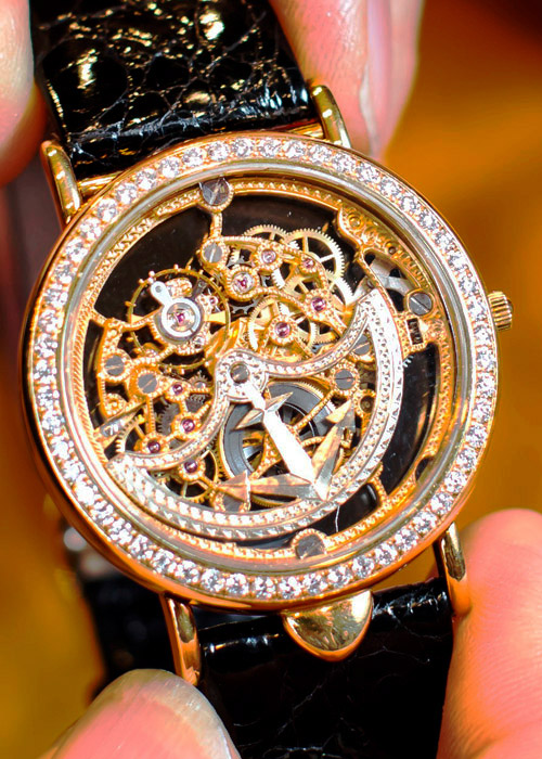 讀書時,正巧遇到玩古董錶的老師,讓沈先生也一頭鑽進懷錶的世界,他不但替老師鑑定錶上的寶石,也練出依機構不同分辦鐘錶製作年代的本事。後來因為從事寶石鑑定工作,必須在全球各種寶石礦區產區到處跑,也有機會遊歷世界各地的跳蚤市場,收藏鐘錶的過程裡,他少走了很多冤枉路。讀萬卷書與行萬里路,讓他在鐘錶世界裡悠遊自在。同樣類型、結構的錶,通常他選代表性高的,長期下來,藏品的廣度非常可觀,他不執著於品牌(儘管叫得出名號的牌子,幾乎他都能拿得出錶),藏品都因為本身有特殊之處而獲青睞,而非因為牌子的名氣大。