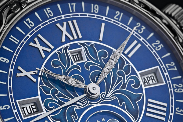 話說,之前我已經提到,就Patek Philippe來說,這個年度重量級手錶,如果沒記錯,這只手錶不會是常態生產的,也就是說,購買此錶絕對是必須要Patek Philippe公司的老闆父子倆的認同,這個客戶才可能下單訂作生產;不過,若你仔細看到腕錶的美麗不單來自於那組高複雜度的機芯,而我們第一眼所見,腕錶外觀的手工峻雕藤蔓花紋,是耗費工時及成本的一大要件;從錶冠、指針上的細節處,陰暗面及刀剔磨沙處理效果,都非快速可以完成的工序;我們又從黃金製做而成的基礎錶盤上,可以看到收藏家最愛的工藝之一"掐絲琺瑯"帝紋花朵,從盤面上的每一個線條及軌道,都是必須事先產生出輪廓,之後再內填由釉色原料,此處負責師匠將填補周圍浮雕輪廓與熔融搪瓷手工凹槽,這些材質是以玻璃粉末,金屬氧化物和油的粘性混合物施加超細刷,燒製為盤上的色彩,這可以說是近代最細膩琺瑯工藝代表作品,這類的作品通常必須要在攝氏850度燒製爐內,反覆的燒烤出不同的顏色漸層變化,當然,這也是Patek Philippe廠內最有經驗的琺瑯師(enameler)來完成。