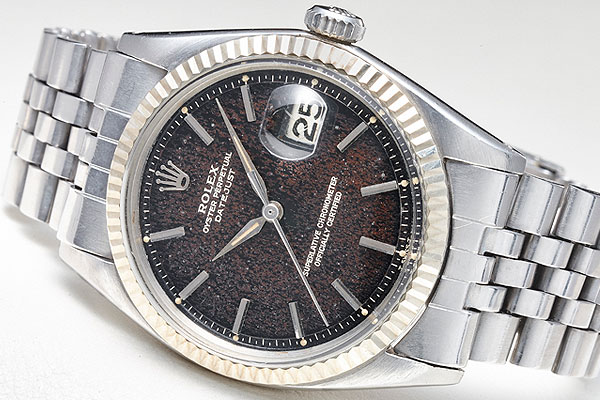 很多人覺得勞力士的外觀都差不多,但在蔡建泰眼裡些微的差別也是玩勞的樂趣之一。他拿起一只Ref.1601說“像這個和普通的1601一樣,但Gilt Dial很特殊,現在很熱門”。這種面盤並不是原廠出來就如此,而是經過自然的老化之後才變成這個樣子,顏色從黑到暗紅,質感如瓷器,整個感覺讓人聯想到鈞窯瓷。人造老化的效果不容易做到這樣的歲月痕跡,所以價值高很多。話雖如此,他也提醒大家“玩這種錶都是要繳學費的,要小心”!