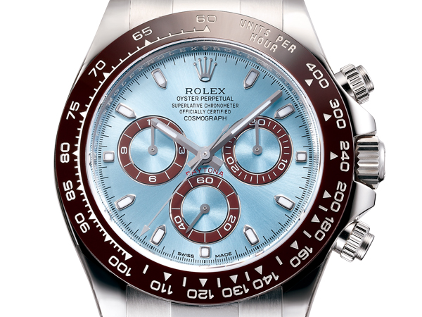 我想大多數人一定都知道勞力士五十周年的Cosmograph Daytona,知名美國男星保羅‧紐曼還配戴過它,冰藍色面盤帶來雅緻清爽的感受,是三、六、九點鐘的三眼設計,搭載新一代4130型自動計時機芯,是勞力士近代首款自製計時機芯,採用垂直離合結構與傳統導柱輪裝置。