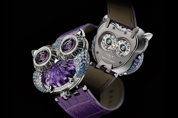 HM3變化無窮,這是品牌與珠寶品牌BUCHERON合作所發表的Jwlry Machine,透過貴寶石,將這又被暱稱為青蛙的HM3變身成為可愛的貓頭鷹。