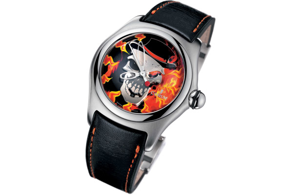 孕婦的大肚皮並不會特別讓人雀躍,讓人開心的是肚皮裡面孕育的新生命。而泡泡錶的特別,除了半圓形的藍寶石水晶錶鏡外,重點!關鍵!要訣!在於壓在錶鏡下,藏於錶殼中的面盤圖樣!Severin是位藝術收藏家,本身收藏了許多藝術品,可以想見他在藝術面的態度與造詣,因此在他的主導下,Bubble發表一連串精彩而大膽的面盤圖案。