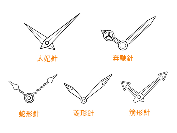 以下提出五款錶,分別擁有寶璣針、柳葉針、太妃針、奔馳針及棒形針,是筆者滿愛的腕錶指針類型。