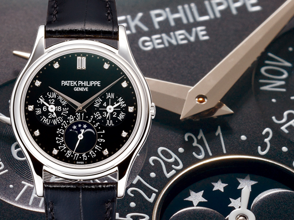 百達翡麗這款5140P萬年曆於2014年推出,是黑檀色面盤,整體設計豐富,三點跟九點鐘的兩塊副面盤細節處理精細,太妃指針切面打磨也很細致,為錶面增添直接俐落的清爽。