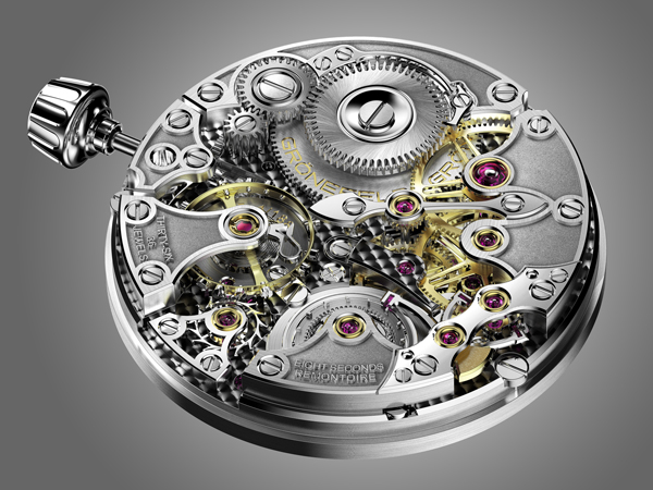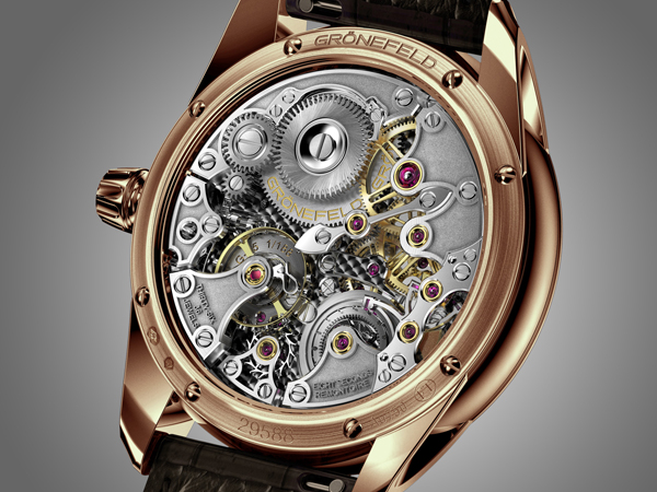 之前我曾經介紹過早年Grönefeld 倆兄弟的祖父,John Grönefeld是負責維護奧登茲奧-阿斯滕村 Royal Eijsbouts 教堂的大鐘,當祖父約翰去世後,這個責任則直接傳遞給他們的父親的Sjef Grönefeld,這所於1913年所創建的教堂大鐘,便是採取了一個Remontoire系統,作為大鐘的調節機構,因為大鐘的擒縱系統輸出的力道大,又遇上北歐國家的天候,是為其精確度的要求,大鐘是可以調節校準每30秒一回,也因此大鐘的時分可以更為精確。這枚全新的1941 Remontoire腕錶的結構就是這樣,只是他們將精確度作到最高的設置,當擒縱在運作之時每八秒,便會調整行進間的誤差,以達最高的要求水準。