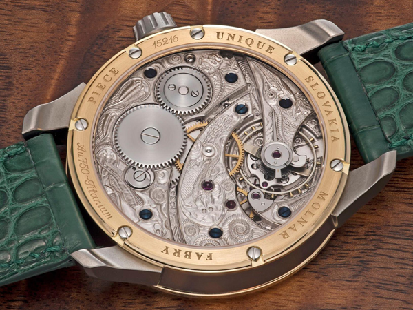 獨立製錶師Michal Molnár強調,他們所生產的腕錶均為高度的手工製錶,就連錶殼及帶扣都是他們自己所設計生產的,並非向錶殼工廠購買的代用品,也因此更可以強化客戶的需求,這枚「 Archehorology考古學」的錶殼尺寸達44mm,採用著鈦金屬及18KRG兩種金屬來完成架構,老實說這種組合相當討喜,光是錶殼的配色層次上便直接顯示出獨特的個性。最後,這枚腕錶可是耗費了整整480小時來完成,因為大量的手工生產,所以他們倆人非常重視整體的品質,就一整年的總產能不過十多枚,而這些訂單均來自世界各地,對於高度傳統製錶藝術喜愛者,為自己或是家族所訂下的一個記錄(紀念)的里程碑。